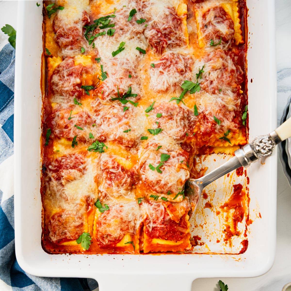 โ4-Ingredient Baked Ravioli CasseroleโFrozen ravioli goes straight from the bag to the dish, and thereโs no thawing or boiling required! Just layer, bake, and get ready for a cozy, crowd-pleasing meal that comes together on even the busiest weeknights.
