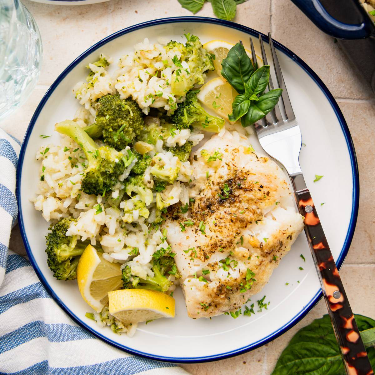 โDump-and-Bake Italian Fish with Rice and BroccoliโAn entire meal that cooks together in one dish! With just 5 minutes of prep, you can stir together the raw ingredients and enjoy a healthy, flavorful seafood dinner any night of the week.